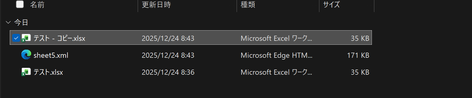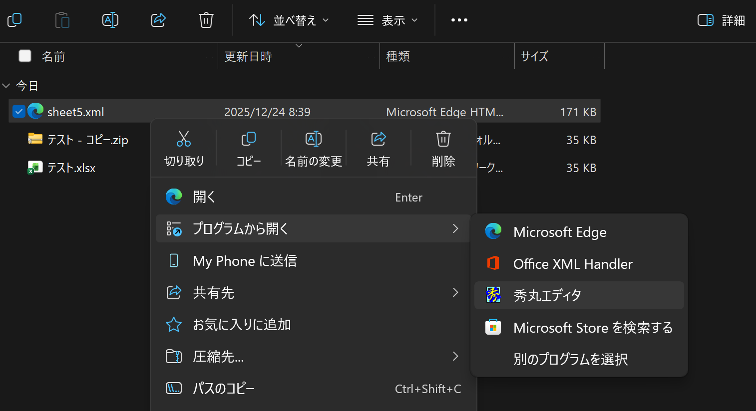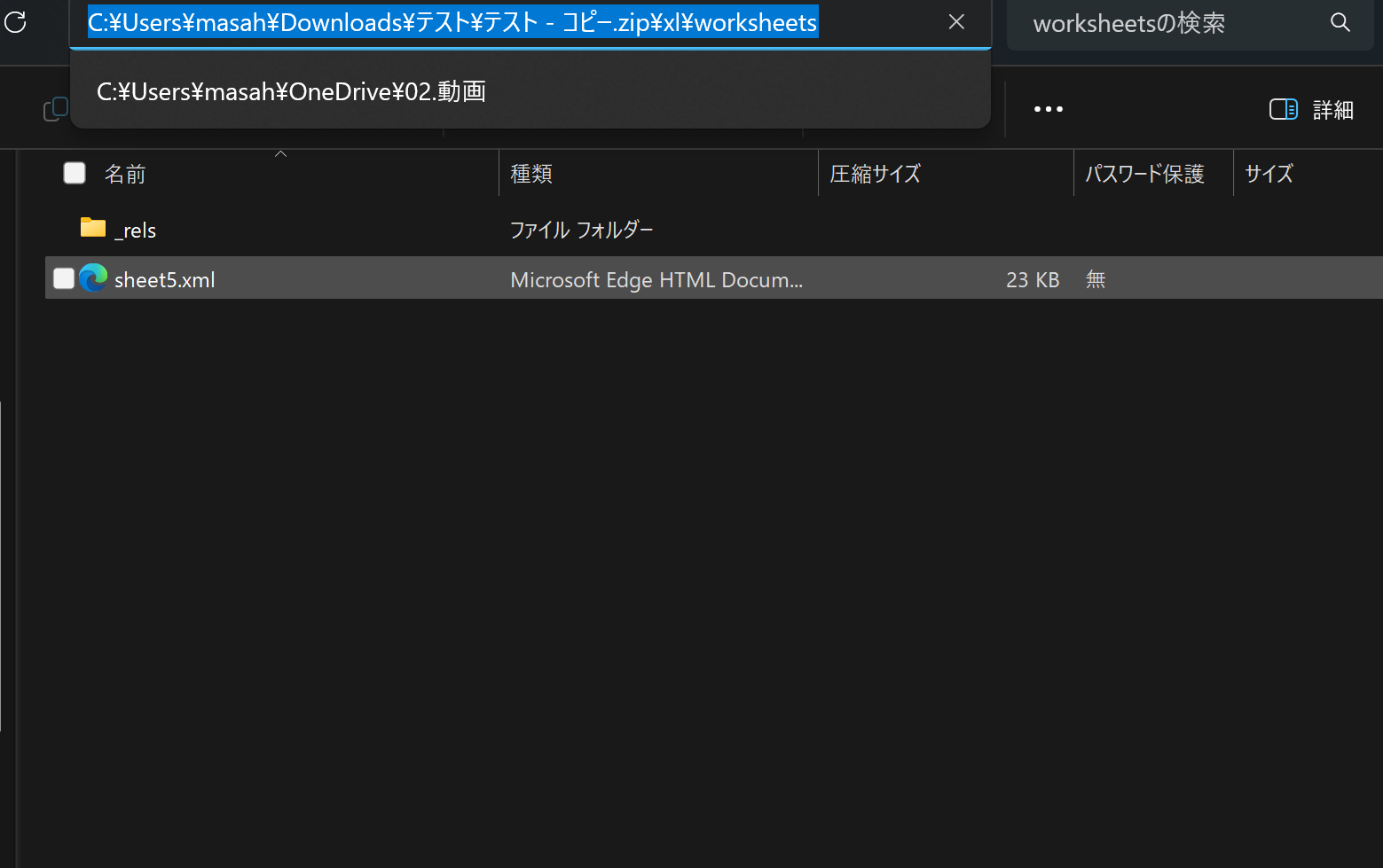 ⑤編集したシートをコピーして、元のzip配下に移動します。