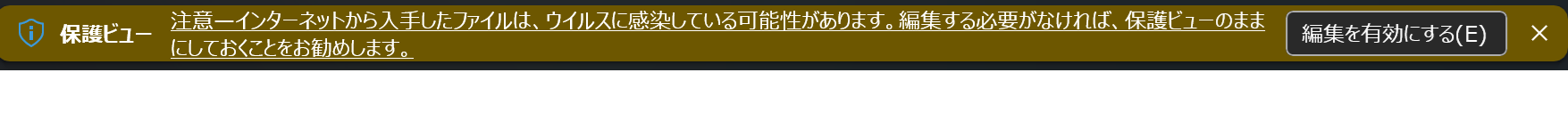 ⑧「保護ビュー」メッセージが表示されますが、ここの編集を有効にするをクリックします。